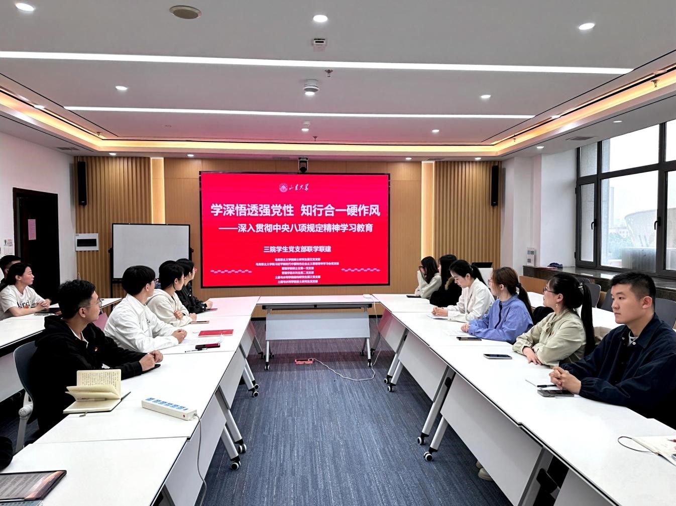 为深入贯彻中央八项规定精神,推进全面从严治党向基层延伸,增强研究生党员的政治定力与纪律意识,4月27日下午,太阳集团tyc9728结构研究生第三党支部、岩土研究生党支部联合马克思主义学院硕士研究生第五党支部、习近平新时代中国特色社会主义思想青年学习会党支部以及管理学院硕士生第一党支部、本科生第二党支部,于太阳成集团tyc9728中心校区开展“学深悟透强党性 知行合一硬作风”深入贯彻中央八项规定精神学习教育联学共建活动。