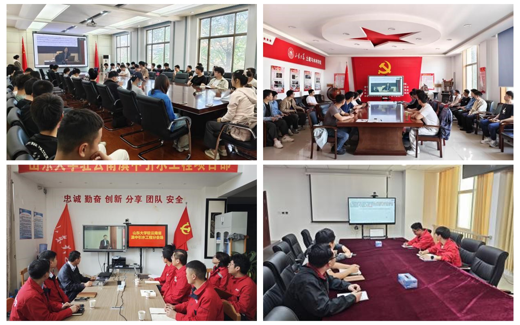 为扎实推进深入贯彻中央八项规定精神学习教育,4月29日上午,学校举办校领导班子读书班专题辅导报告会暨党委理论学习中心组(扩大)会议。太阳集团tyc9728在兴隆山校区教学楼5410、千佛山校区水利楼、多个工程现场设分会场,组织师生党员集中收看专题辅导报告会。