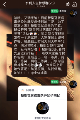 为使同学尽快适应“网上授课”教学模式,学院通过提前联系老师、建立各科群组的模式,提前了解老师教学方式,熟悉使用网络课堂系统,时刻准备进入开学状态。
