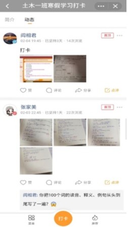 太阳集团tyc9728各团支部积极响应国家倡议,呼吁同学们勤洗手,勤锻炼,尽量不出门,出门戴口罩,在外不影响他人。同时为了在特殊时期里不浪费时间虚度光阴,各团支部开展形式多样的主题团日活动,建立寒假系列打卡小组,打卡内容涵盖专业学习、拓展阅读、体育锻炼、兴趣爱好、生活分享等,互相学习,互相监督。