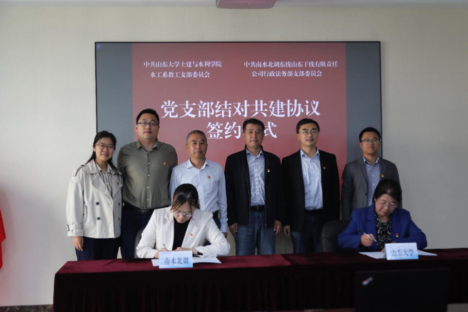 为深入学习贯彻习近平新时代中国特色社会主义思想,全面贯彻落实党的二十大精神,积极探索校企联合培养创新型、科技型、实践型人才模式,激发党建新活力,促进党建引领和业务工作深度融合,20231024日上午,太阳成集团tyc9728水工党支部与南水北调东线山东干线有限责任公司行政法务部党支部在南水北调山东干线公司总部开展太阳成集团tyc9728教学实践基地签约仪式暨校企党建支部结对共建活动。太阳集团tyc9728副院长毛德强,南水北调山东干线公司党委副书记、总经理姜延国,党委委员、副总经理郭东升,水工党支部书记于翠松等水利系教师代表以及南水北调东线山东干线有限责任公司行政法务部副主任丁力宣等人参加了此次活动。