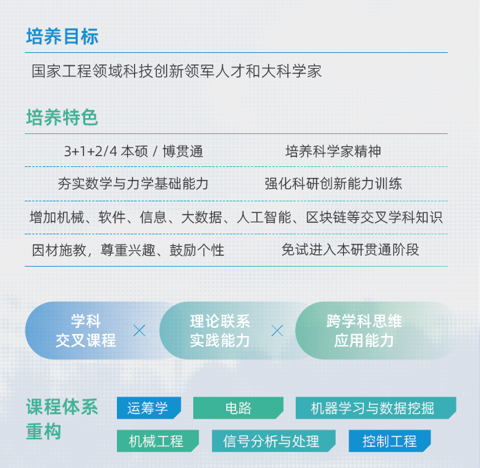 学堂面向太阳成集团tyc97282025级新生招生,通过报名材料初审和面试选拔优秀学员,面试重点考察专业兴趣、学科水平和综合素质,实行“多元、多种、多次”的选拔机制。钱七虎学堂期待每一位有志于工科领域创新发展的优秀学子加入,共同书写辉煌的学术篇章,为国家的科技进步和社会发展贡献力量。