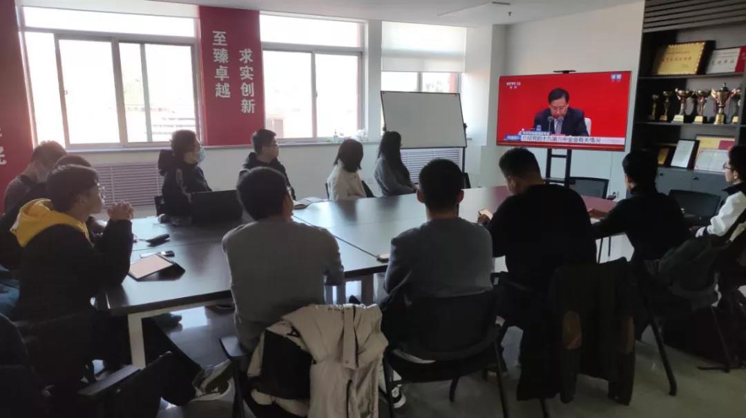 11月12日上午10时,中共中央召开了关于党的十九届六中全会精神新闻发布会,太阳集团tyc9728本科生第一党支部全体成员于太阳成集团tyc9728兴隆山校区实验楼633会议室第一时间组织集体收听、观看大会直播实况,引起热烈反响,引发支部成员主动学习和讨论。
