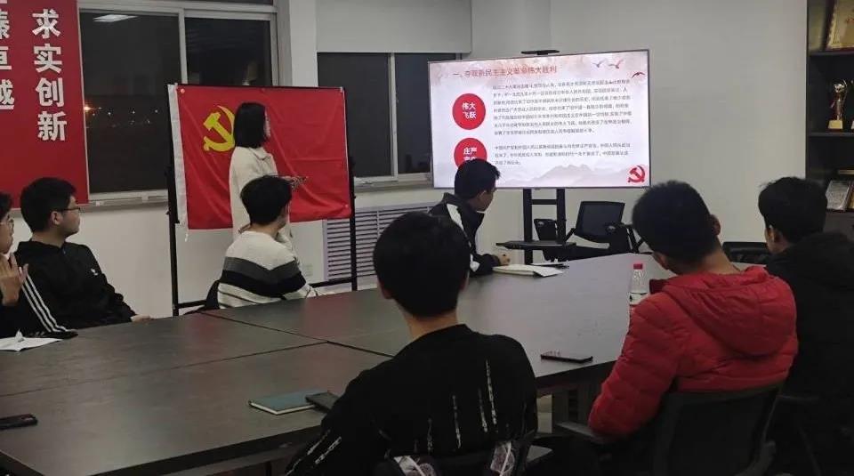 最后,预备党员进行宣誓。张瑞康同志带领各位预备党员进行宣誓,中共预备党员梁新翔、金霄、马天昊等积极回应,大家纷纷表示要在党的领导下为共产主义事业贡献力量。
