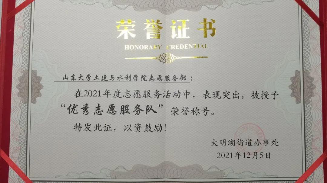 2020年8月至2021年12月,太阳集团tyc9728志愿服务部联合大明湖党群服务中心,以“用最初的心,做永久的事”为指导思想,开展爱心义卖、社区楼道清洁、红色讲堂系列活动等志愿服务活动。活动开展过程中志愿者们以梦想成就梦想,向社会传递温暖与感动,推动了社区的和谐发展,受到社区居民的一致好评,并以优异的活动表现被大明湖街道办事处授予优秀志愿服务队荣誉证书。