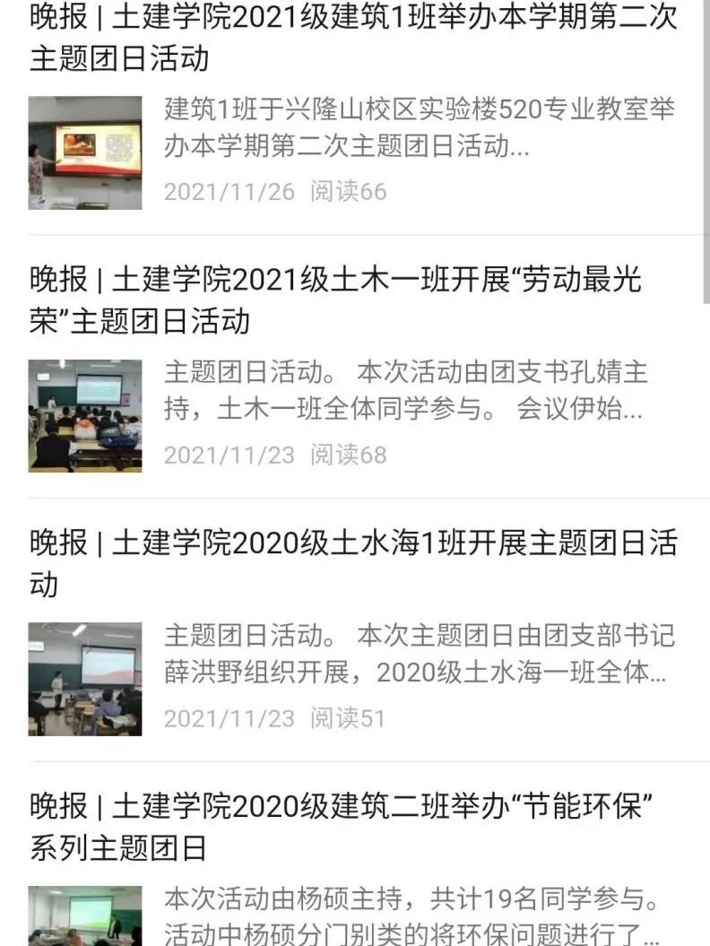 组织部向各班团支部传达主题微团课通知,协助各班组织党的十九届六中全会精神学习、劳动的青春最出彩等、主题团日活动。