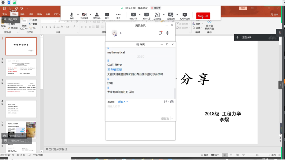 为帮助同学们更好地完成大学生创新创业训练项目立项及后续推进工作,5月1日晚七时,太阳集团tyc9728于线上开展大学生创新创业训练项目经验分享会。本次活动由学科部成员张仕龙主持,2018级工程力学系李浩隆、李熠参与分享经验。