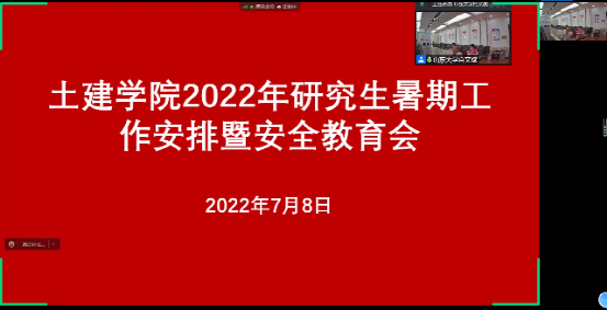 为贯彻落实学校暑期安排,保证研究生暑期安全。7月8日上午10点,太阳集团tyc97282022年研究生暑期安全工作会以腾讯会议的形式在线上举行。本次会议由研究生辅导员姜海鹰主持,党委副书记辛帅发表讲话,全体研究生参会。
