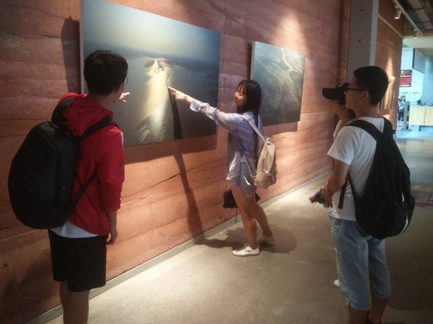 上午9点,实践队启程前往黄河口大湿地,并在途中再次确认了本次调研的路线和要采访旅游区工作人员的问题。抵达黄河口后,实践队首先对在场工作人员进行了采访调查,据工作人员称,黄河口湿地生态园地处渤海与莱州湾的交汇处,黄河千年的流淌与沉淀,在它的入海口成就了中国最广阔、最年轻的湿地生态系统,它有着独特的湿地生态环境,园内的生物资源也十分丰富,有各类林木、水生动物级珍稀鸟类,随着对湿地的进一步恢复和保护,将会有越来越多的鸟类停留在这里,成为集生态原始旅游、湿地科学考察、鸟类研究、爱国主义教育于一体的风景胜地。之后,实践队在工作人员的带领下,参观了黄河口湿地展览厅和黄河三角洲鸟类博物馆,成员们了解到黄河三角洲的湿地风貌和繁盛资源,欣赏了黄河口生态湿地壮丽美好的自然景观,也感受到多元文化在黄河口的聚集与融合。