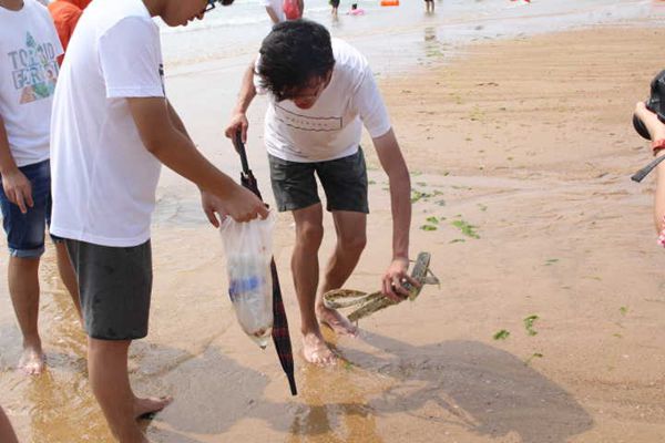 8月13日,太阳成集团tyc9728“海若”社会实践团的调研活动在日照市山海天海水浴场进行。山海天海水浴场又称第三海水浴场,是一个客流量大,人口密集的海水浴场,所以管理部门对其环境状况极为重视,同时也是调研活动的一个重要地点。