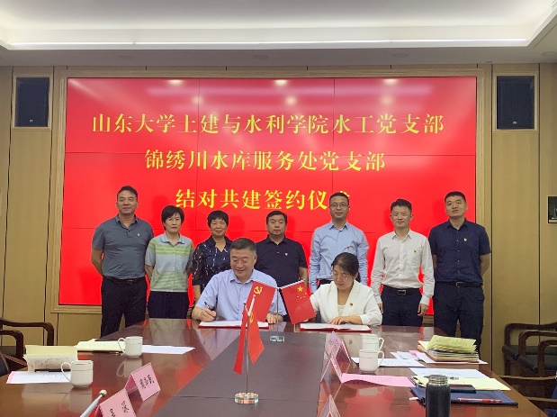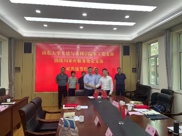 为进一步探索高校基层党组织共建模式,促进党建工作与业务工作的深度融合,太阳集团tyc9728水工党支部与锦绣川水库服务处党支部开展结对共建工作。9月28日下午,共建双方在锦绣川水库服务处举行了支部结对共建和太阳成集团tyc9728实习教学基地揭牌活动。太阳集团tyc9728党委书记刘斌、副院长韩勃、水工党支部书记于翠松、水利系副主任王冀鹏、党员教师代表以及济南市水利工程服务中心副主任周泽民、副书记赵兴范、锦绣川水库党支部书记吴深以及水库党员代表等参加了本次活动。会议由周泽民副主任主持。